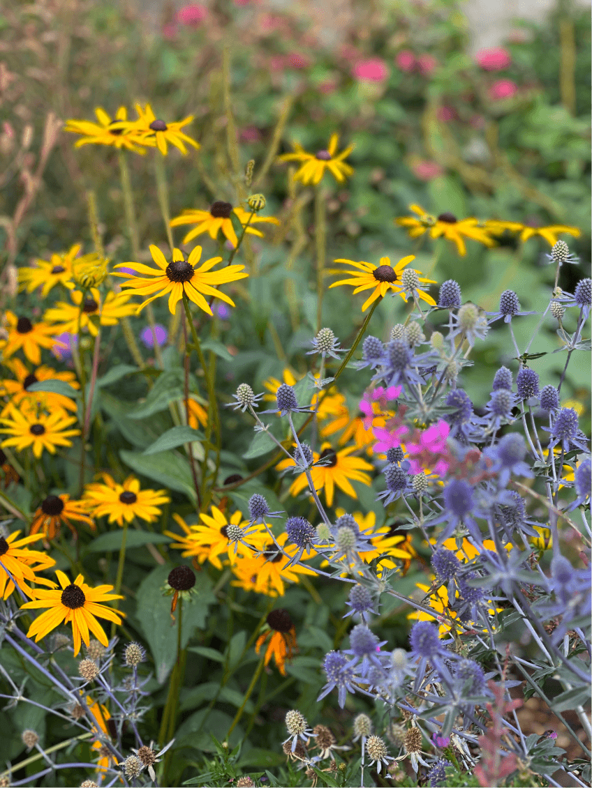 Так как заказчица очень любит цветы, но в природе ярких цветов не бывает — мы предложили разместить однолетники в вазонах, которые имеют более яркий цвет.