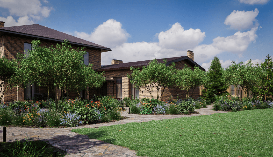 Цветник стал сердцем проекта, это самая ответственная часть. И не хотелось делать его единым пятном, хотелось чтобы он состоял из нескольких пропорциональных друг-другу пятен, чтобы внутри цветника можно было пройтись, осмотреть его под разными углами, остановившись наклониться, почувствовать аромат цветения. Хотелось, чтобы цветник был в диалоге со зрителем.