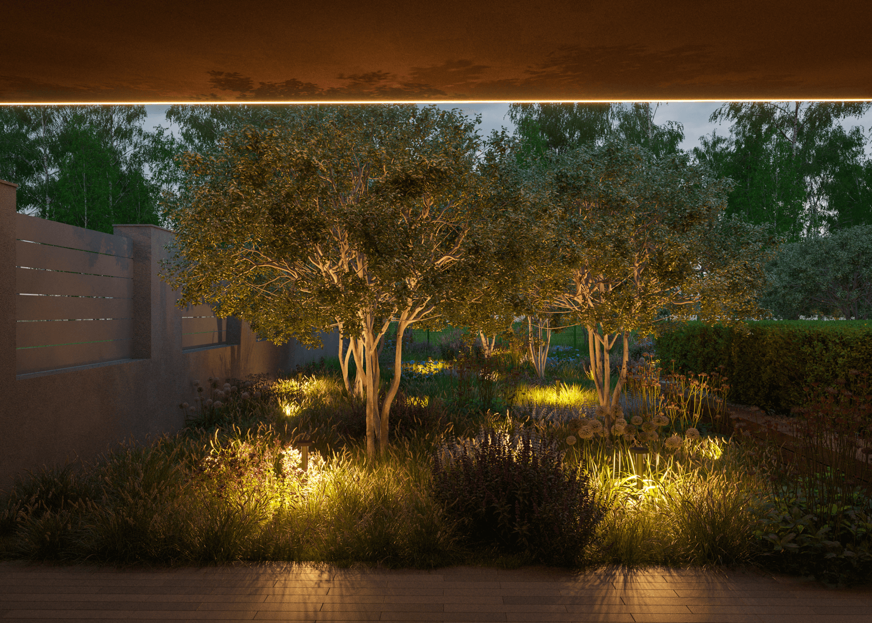 В этом проекте также нашла своё место наша любимая изгородь из ели обыкновенной. Она хорошо устойчива к тёмным условиям, поэтому было решено добавить её между домом и забором, чтобы создать хороший фон для центральной зоны террасы.